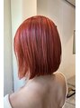 フルブリーチをして、その上から発色の良いカラーでオレンジをのせました。以前入れてたハイライトやローライトも効いていて、重めボブですが動きが出る感じになっています。