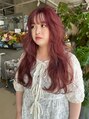 #ピンクベージュ#ピンクカラー#ハイトーンロング#暖色系カラー#ロングヘア#巻き髪