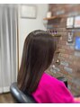 〈髪に水を覚えさせるトリートメント〉傷んだ髪に水分が無ければ髪に栄養(tr)は入りません。健康髪に必要である水分=水を吸わすトリートメントをさせて頂きました。これを継続して頂き、購入して頂いた自宅でのホームケアを頑張って行くと頭皮と髪は元気に◎