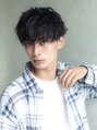 前下がりマッシュのベースにランダムに動くように、スパイラルパーマをかけたスタイル。サイドと襟足は短すぎない長さで刈り上げ。強すぎないスパイラルパーマをかけて無造作な質感。ワックスつけるだけで形になるくらい、セットが簡単にヘアスタイル!