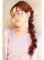 ロングの長さを生かした編みおろしアレンジ。顔まわりに短い後れ毛を作り、アレンジのポイントに○