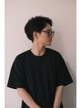 短めのセンターパートヘア緩めのパーマで毛流れを作ります。