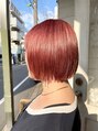 切りっぱなし大人の前髪ありショートボブピンクオレンジ30代/ホットペッパービューティー