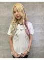 ブリーチ回数は1回。リタッチ部分にのみブリーチしました◎カラー剤は使わずに、カラーシャンプーで色味を整えた抜きっぱなしブロンド♪シールエクステは全部で50枚。ブロンド、紫、グレーの3色を使用しました◎ツートーンのメッシュで個性的に♪