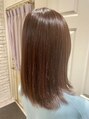 前上がりで少し段を入れてコテで巻いた時に動きが出やすく後ろ姿も綺麗に見えるカットになっていますカラーはグレーをベースに少しだけマットを混ぜた透明感ある暗いオリーブグレージュになっています