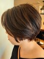 ボブベースのふんわりとしたナチュラルショートヘアカラーは、ラヴェンダーアッシュでクールに。