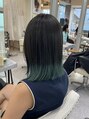 ミディアム 切りっぱなし モーブグリーン グリーンカラー 裾/ホットペッパービューティー