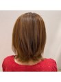 レイヤースタイルに明るめのベージュ系カラーで艶感と動きをつけました。肩に当たってしまって跳ねる人などにオススメです。