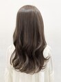 ナチュラルなくびれと巻きすぎないカール感がキュートさのポイントです。ゆったりとまとまりが出るようにカットしそこにワンカールの動きを加えます。前髪はセンターパートでちょっぴり大人っぽさを演出。カラーは透き通るようなグレージュに。
