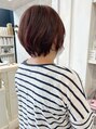 夏に大人気な赤みカラー。赤みチェリーカラーです。ツヤツヤに見えます。お肌との馴染みも抜群です!!!襟足スッキリで、丸みがあるひし形ショートボブ。どの角度から見ても綺麗。ふわっと仕上がります。コテで巻くとさらに可愛さupです。