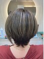 大人アシンメトリーショートスタイルです。カラーは白髪ぼかしにもなるハイライト入ってます。ハイライトはブリーチ少なめでダメージレスなハイライトになってます。