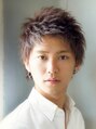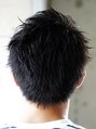 サイド刈り上げなしツーブロックのアップバングショート。ツイストパーマで束と毛流れを創りスタイリング簡単にした男らしいショート。