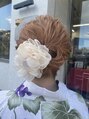 短いボブヘアでしたがアップしてるように見せたいとご要望!低い位置でまとめて、トップはウェーブでボリューム出してサイドは編み込みを取り入れました!