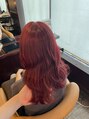 ハイトーンカラー/レッド/ミディアムロング/赤髪/ケアブリーチ