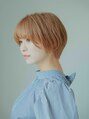 少し重めのショートボブスタイルです。全体的に丸い印象になり、カラーをハイトーンにすることによって軽さをだしています。襟足は首に沿うようにカットし、顔まわりはレイヤーをいれメリハリをつけることによってコンパクトな印象になります。