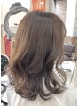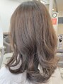 鎖骨下5cmのセミロングローレイヤー。カラー同時施術のアメージングトリートメントで、髪が引き締り、軽い仕上がりに。10トーン・シナモンベージュカラーで柔らかい雰囲気に。