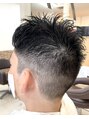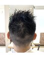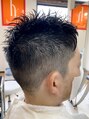 メンズのスパイキーショート。ハチ周りまで3mmから6mmで刈り上げ、スッキリと。トップはレイヤーでランダムな動きに。