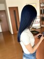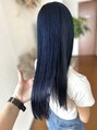 深いネイビーです♪ブリーチ必須のカラーになります。深く、暗く入れてるので黒っぽく見えますが光にあたるとキレイなブルーにも見えます。