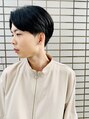丸みのある、黒髪のマッシュベースにカット。前髪をやや長めにし、センターパートに毛流れしやすくしています。トップの毛は長めに残して重さを引き出しているのでやわらかい雰囲気に。サイドとネープは自然に刈り上げて、スッキリとした印象にしています。