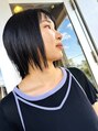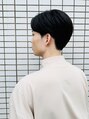 丸みのある、黒髪のマッシュベースにカット。前髪をやや長めにし、センターパートに毛流れしやすくしています。トップの毛は長めに残して重さを引き出しているのでやわらかい雰囲気に。サイドとネープは自然に刈り上げて、スッキリとした印象にしています。