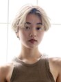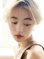 きっちり分けすぎないセンターパートショート。ハイトーンのミルクティーベージュで透明感をだしています。ニュアンスカールで柔らかい動きをだす。