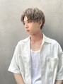これからの夏の季節にピッタリのハイトーンスタイル。明るめのベージュにハイライトをいれたカラー。サイドは長めにツーブロックを入れ、襟足はハサミで短めに。前髪は上げやすいように毛量、質感調整してあります。周りと差をつけたい方にオススメです!