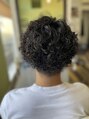 アップバングでサイドはスッキリとスパイラルパーマで夏の色気のあるスタイルです!