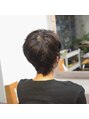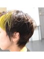 ゆるいクセを活かしたショートヘア。ポイントにアシメのイエローハイライト。分け目の付け方で目立つようにも控えめにもできます。