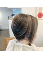 後ろはスッキリとショートボブに、顔周りは長さを残しつつ丸みのある前下がりボブに仕上げました。