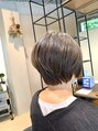 後頭部にボリュームを持たせたショートボブスタイル。アッシュブラウンで赤みを抑え落ち着いた雰囲気に♪