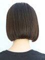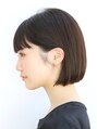 段差を入れずにブラントで切ったボブスタイルです。前髪は流行りを抑えて薄くつくって若々しい印象に。セニングで毛量を調節し、スタイリングは束感を出しつつもハチまわりはタイトに抑えてバランスよいスタイルに。[国分寺/国分寺駅]