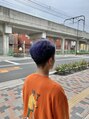 癖毛を活かしたツーブロックスタイル♪ブリーチ一回のブルーカラーで遊び心あるストリート系ヘアスタイルに。髪質によりブリーチ2回必要な場合ございます。