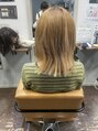 顔まわりにレイヤーでサイドバングを切り込んで、パツっとしたボブアウトラインにボリュームを出さずストンとした質感を出すのがポイント。カラーはボブのライン強調させるよう抑えた色味で、透明感がでるようナチュラルなグレージュで