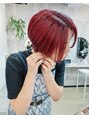 ブリーチ1回~。脱色したベースにカラーバターをミックスしたチェリーレッドをオンカラー。