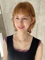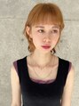 前髪をワイドバングでサイドはすっきり。全体にたっぷりとレイヤーを入れたウルフヘアです。カラーは一度ファイバープレックスブリーチをした後にモスベージュで赤味を抑える事で暗くならずまろやかな印象に。