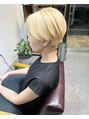 ネープをしっかりと刈り上げたハンサムショート。ケアブリーチ×2の抜きぱなし。ブリーチメニューはご相談(回数・ご予算など)あればお電話でご連絡ください。