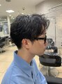 シティーボーイのラフパーマ。センターパートベースに緩く動く縦落ちスパイラルを入れています。