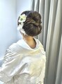艶やかなボリュームのあるシニヨンに、モコモコを合わせてアシンメトリーに和装ならではのヘアスタイル◎