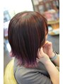 ぱつっとしたボブにデザインカラーアンブレラカラーに裾カラー。一通りデザインカラーをやらせていただいたお客様なので少し変わった感じでカラーリングしました!全体は暖色カラー、表面はダークカラーで染めたので根元が伸びてきても気になりずらいです!