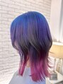 ブリーチ3回後にルベルyoyoで、トップからブルー、ヴァイオレット、ホワイトヴァイオレット、ピンクの順に被せています。