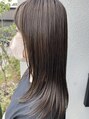 透明感のある発色で髪にうるおい感とまとまりを与えるカラー、ミディアムヘアの綺麗な質感が出るレイヤーカットで顔まわりの動きを出しています。お顔まわりの雰囲気を変えたい方にもおすすめです。