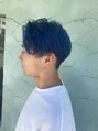前下がりセンターパート×ブルーカラー