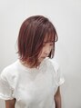 外ハネボブ 切りっぱなしボブ オレンジピンクカラー