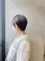 コンパクトな収まりがいいショートで、カラーはオリーブグレージュで重くなり過ぎない柔らかい質感のヘアスタイルにしてみました。