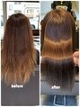 縮毛矯正毛にデジタルパーマやブリーチハイライトが入ってる状態。他店では縮毛矯正お断わりされ酸性縮毛矯正で検索されてご来店。ダメージで毛が切れており毛先が厚みがなく薄い状態。カラーも艶感が出る明るさに。GLTトリートメントでサン熱効果を与えた。