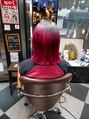 根本をシルバー、毛先は黒染めの残留があったので赤でデザインカラー風に