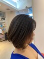 厚め前下がりボブ、大人な雰囲気を好みの方におすすめ。前髪無しにするともっとクールな印象になります。