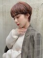 丸みのあるフォルムにオレンジベージュカラーでこなれた雰囲気に。耳までの長さのショートにする事で耳かけをしてもスッキリと決まります。360度素敵に見えるようにカットします。