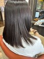 とても髪が硬くて癖が強い事がお悩みでした。普通のストレートでは出せない柔らかさでなめらかプルプルに仕上がりました☆カラーは仕事上明るく出来ないとのことで、ほんのりラベンダーカラーで艶々にしてみました!