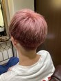 ブリーチ後にピンクをオンカラー。カットはマッシュベースにツーブロックと刈上げでシルエット補正。